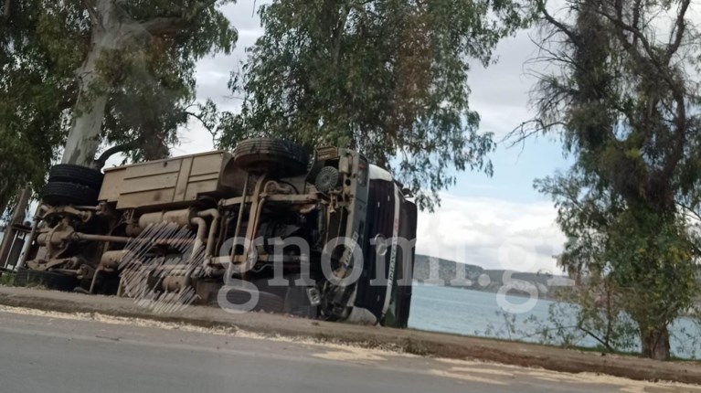 Ειδικότερα, όπως αναφέρει ο ιστότοπος Egnomi.gr. το φορτηγό συγκρούστηκε με Ι.Χ. αυτοκίνητο με αποτέλεσμα το βαρύ όχημα να τουμπάρει έξω από τον δρόμο προς την θάλασσα (φωτό πάνω) και το Ι.Χ. να βρεθεί εκτός δρόμου προς το βουνό (φωτό κάτω).
