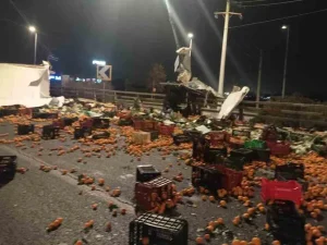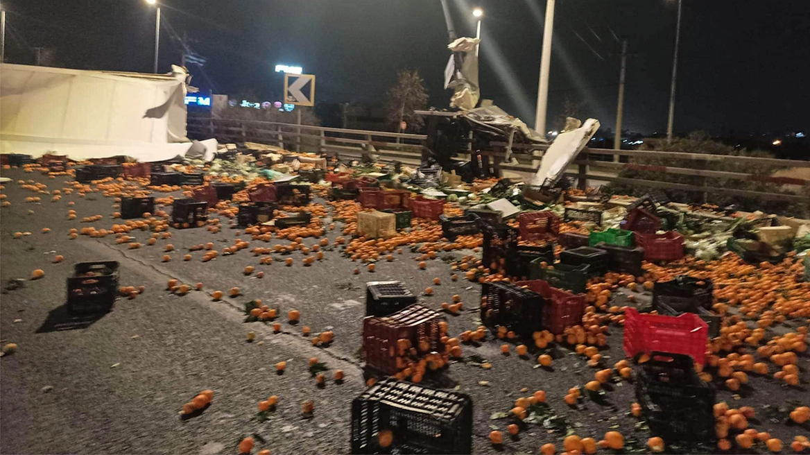 Νταλίκα με πορτοκάλια ανετράπη τα ξημερώματα στον Κηφισό – Τρελή πορεία του φορτηγού!