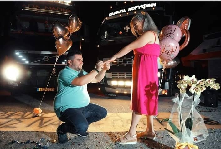 Η πρόταση έγινε, η νύφη ήταν θετική και δέχθηκε την πρόταση ενώ, τα φορτηγά φυσικά, ξεσήκωσαν τον κόσμο με τις κόρνες.