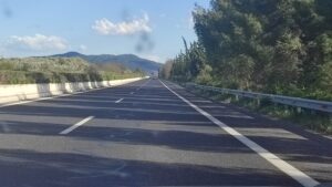 Μετράω – κάνω μια πρόχειρη στατιστική – και διαπιστώνω ότι από τα δέκα οχήματα που κινούνται στην Εθνική οδό, τα πέντε είναι φορτηγά και τα άλλα πέντε ΙΧ. Πριν μερικά χρόνια, η αναλογία ήταν πολύ διαφορετική, με την ζυγαριά να γέρνει προς τα ΙΧ.
