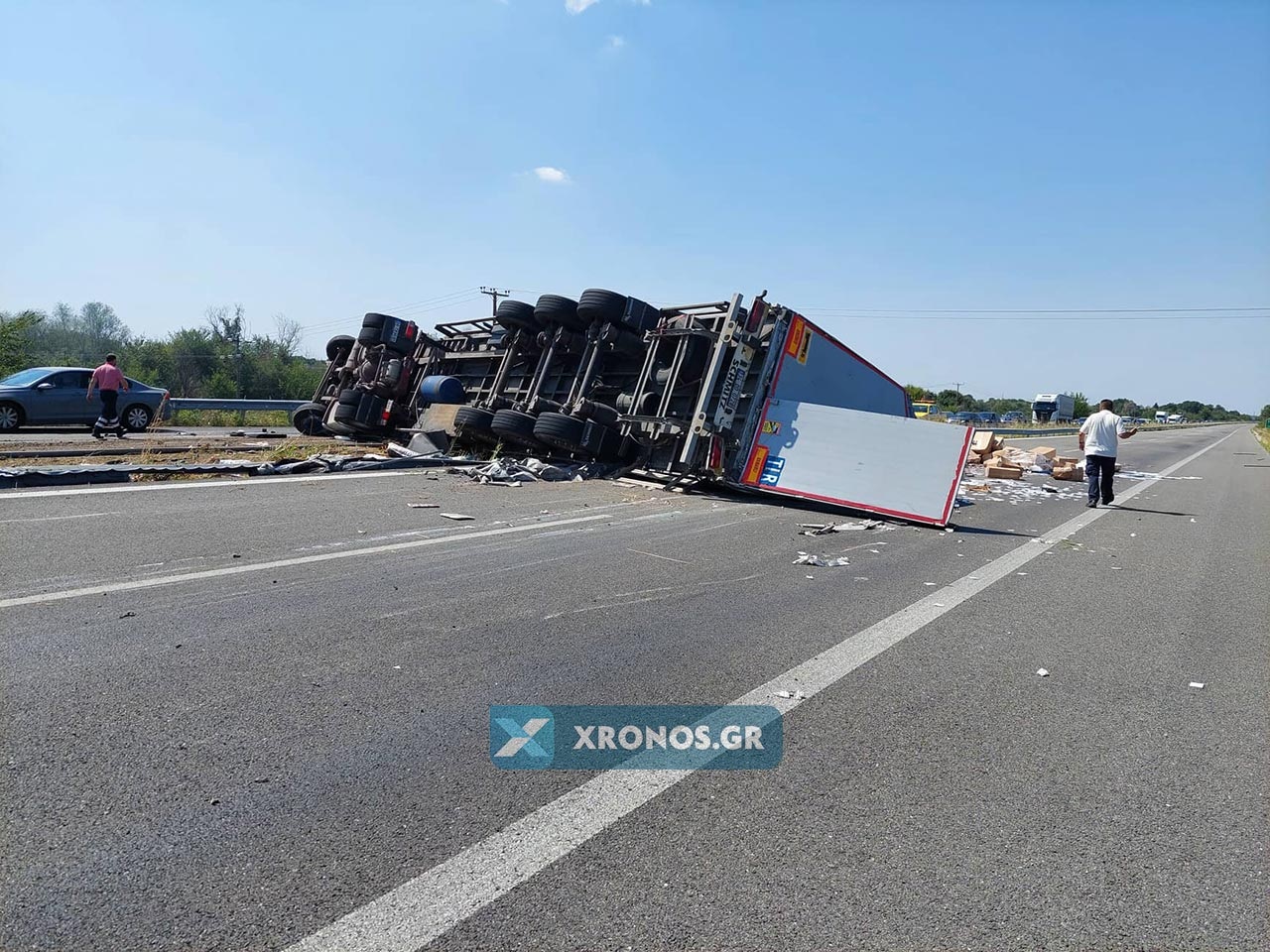 Υπό άγνωστες συνθήκες νταλίκα ντεραπάρισε με αποτέλεσμα να «διπλώσει» στην άσφαλτο και να περάσει μάλιστα κατά το ήμισυ.στο αντίθετο ρεύμα.