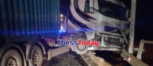 Θεσσαλονίκη – Τροχαίο ατύχημα: νταλίκα συγκρούστηκε με ΙΧ (εικόνες)