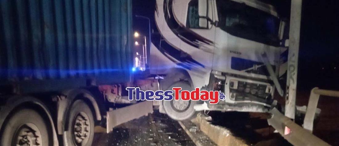 Μία νταλίκα συγκρούστηκε με ΙΧ αυτοκίνητο στη γέφυρα του Αξιού, στην εθνική οδό Θεσσαλονίκης-Αθηνών στο ρεύμα προς Αθήνα με αποτέλεσμα να σχηματιστούν ουρές οχημάτων και να δυσχεραίνεται η κυκλοφορία.