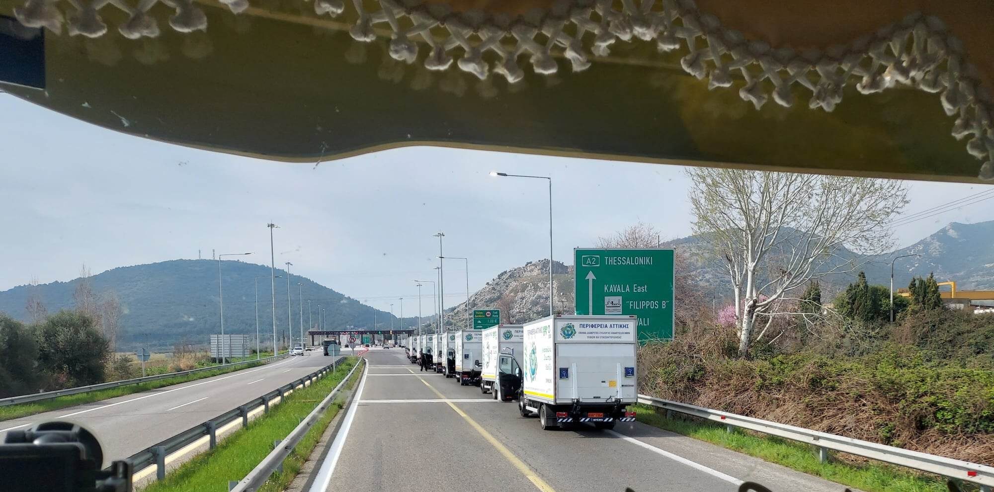 To κονβόι με τα φορτηγά στον δρόμο επιστροφής από Τουρκία