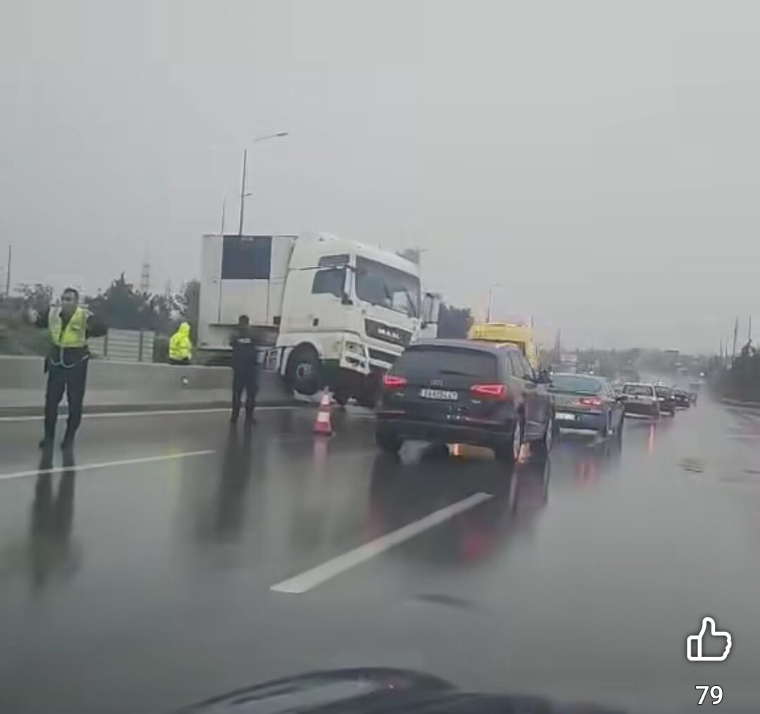 Σύμφωνα με πληροφορίες περίπου στις 17:20 μία νταλίκα που κινούταν επί της Εγνατίας Οδού στο Δερβένι Θεσσαλονίκης,  στο ρεύμα προς Καβάλα, εξετράπη της πορείας της, προσέκρουσε στη  διαχωριστική νησίδα σπάζοντας την και κρεμάστηκε στο αντίθετο ρευμα.