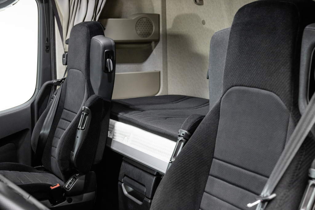 Άλλα στοιχεία εξοπλισμού που συμβάλλουν στην άνεση και την ευκολία του οδηγού είναι τα κομψά καλύμματα των καθισμάτων, η νέα επένδυση πόρτας, ένα αναπαυτικό στρώμα με ανώστρωμα πάχους 45 mm και το ευχάριστο στην αφή πίσω τοίχωμα της καμπίνας στην περιοχή του κρεβατιού. Για ακόμη πιο έντονη αίσθηση ευεξίας, η Mercedes-Benz Trucks προσφέρει διάφορα αξεσουάρ για το εσωτερικό. Ο Von Wallfeld είναι πεπεισμένος: «Το Actros L αποτελεί ένα πραγματικά ισχυρό πλεονέκτημα για τις επιχειρήσεις μεταφορών, δεδομένης ιδίως της σοβαρής έλλειψης οδηγών».