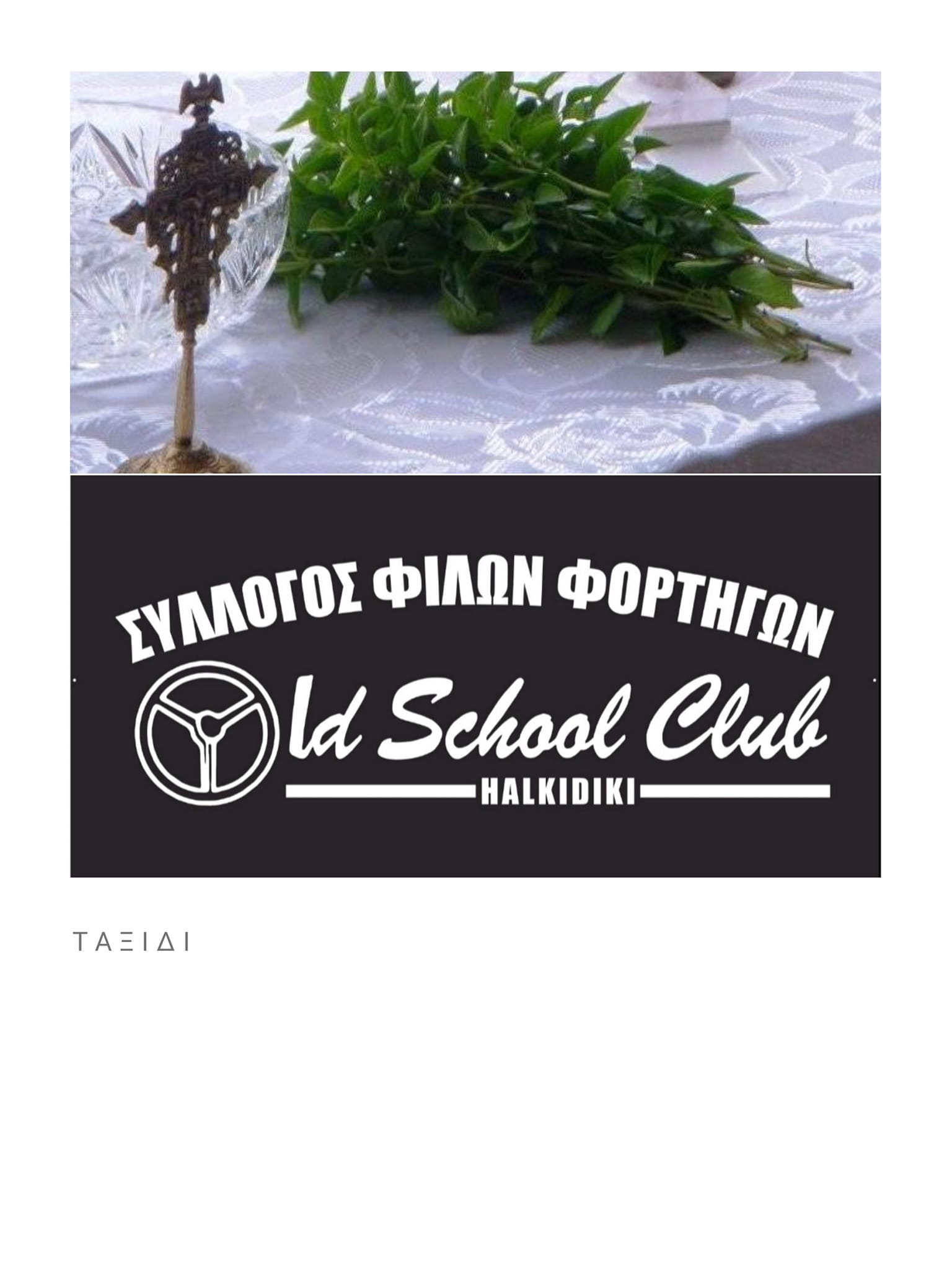 Το συμβούλιο και τα μέλη του Old school club halkidiki σας καλούν στον αγιασμό του συλλόγου την Κυριακή 13 Μαρτίου και ώρα 12 στο ανοιχτό Δημοτικό parking στην οδό ελευθερίας στα Νέα Μουδανιά. Η πρώτη γιορτή είναι αφιερωμένη για να βοηθήσουμε ένα συνάδελφο με μεγάλη ψυχή και τον αγώνα που κάνει Γιάννης Δαμιανός .