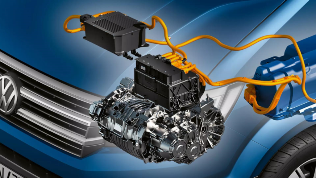 Ο ηλεκτροκινητήρας του e-Crafter είναι ενσωματωμένος στο εμπρός μέρος. Αποδίδει 136 ίππους (100 kW) μέγιστης ισχύος και ροπή 290 Nm. Η ισχύς μεταφέρεται στους μπροστινούς τροχούς μέσω ενός αυτόματου κιβωτίου μονής σχέσης σχεδιασμένο ειδικά για επαγγελματικά οχήματα.