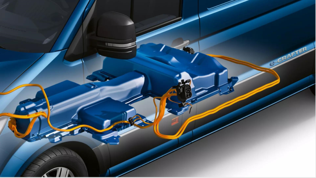 Από τεχνικής άποψης, το e-Crafter σχεδιάστηκε εξ αρχής ώστε να έχει βέλτιστα τοποθετημένο ηλεκτρικό σύστημα κίνησης. Χαρακτηριστικό παράδειγμα η εξοικονόμηση χώρου με την τοποθέτηση της 35,8 kWh και 318 κιλών μπαταρίας ιόντων λιθίου, στο κάτω μέρος του οχήματος. Με αυτό τον τρόπο, επιτυγχάνεται η πλήρης αξιοποίηση της χωρητικότητας φορτίου των 10,7 τ.μ. και του ύψους των 2.590 χιλιοστών. Το ίδιο ισχύει και για άλλες σημαντικές διαστάσεις, όπως το πλάτος (1.380 χλστ.) και το ύψος του διαμερίσματος φόρτωσης (1.861 χλστ.). Το μέγιστο ωφέλιμο φορτίο φτάνει τα 970 κιλά, ανάλογα με την διαμόρφωση της παραγγελίας του πελάτη.